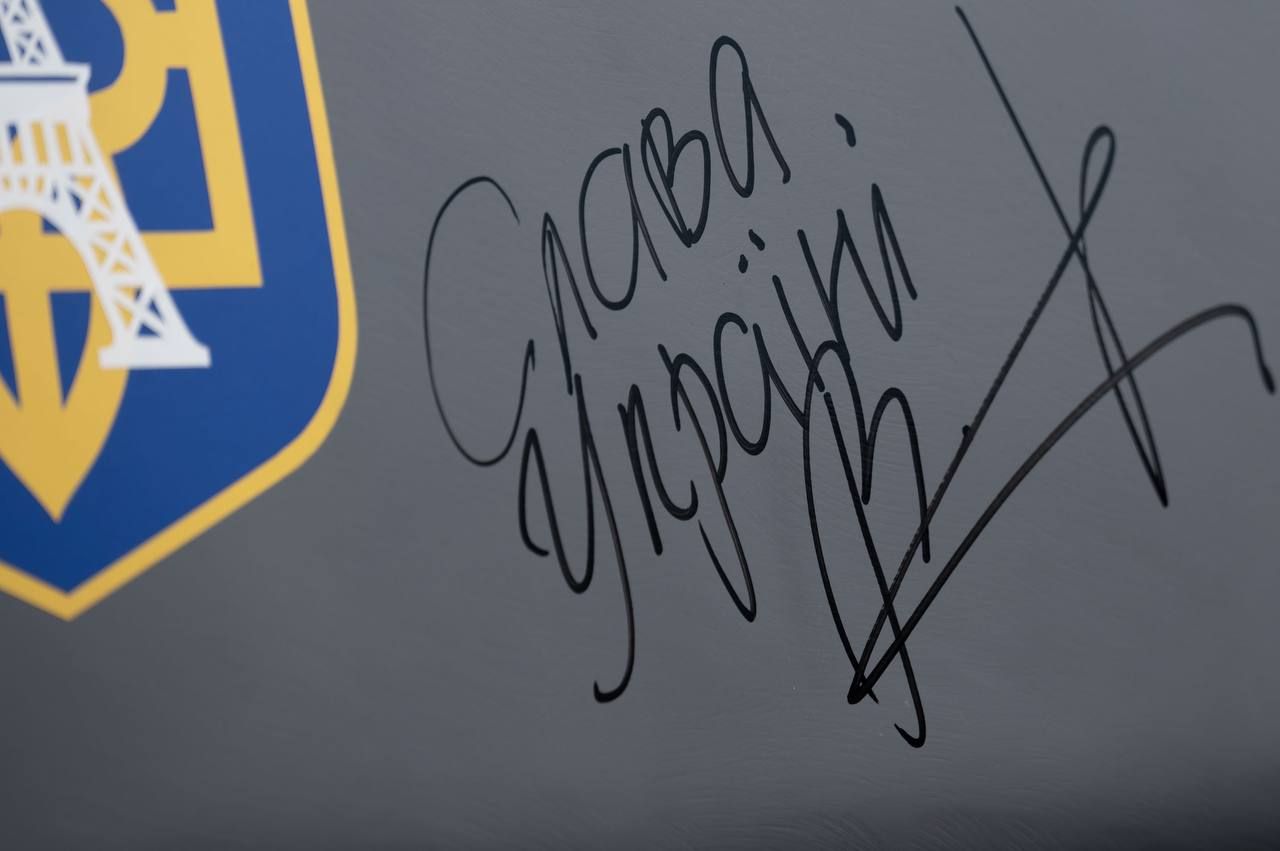 На французском боеприпасе Зеленский написал украинский национальный лозунг – "Слава Украине!". Кроме того, он также поставил на ракете SCALP-EG свою личную подпись.