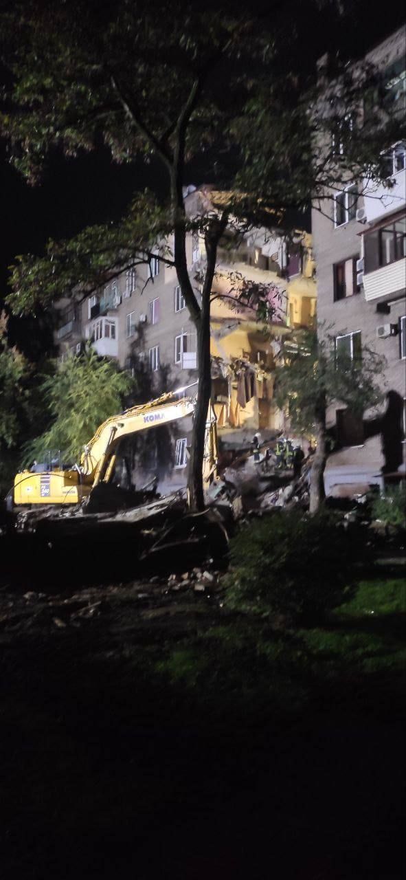 Спасатели ГСЧС и коммунальщики всю ночь, без передышки, разбирали завалы у многоэтажного дома, в который вчера попала рашистская ракета.