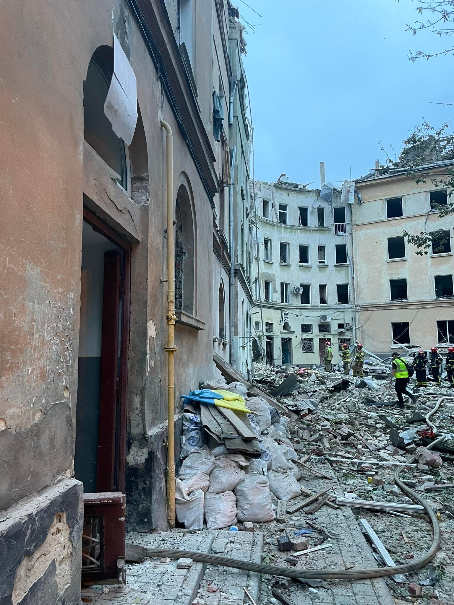 - К сожалению, во время ракетной атаки по Львову пострадал жилой дом. Глава Львовской ОВА Максим Козицкий обнародовал жуткие видео с места событий. На кадрах видно, что верхнего этажа дома практически нет. На его месте – руины.