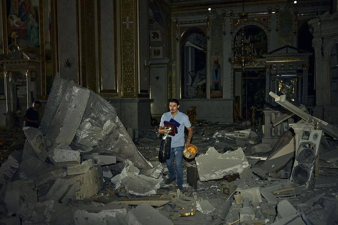 Однако как Украина воспроизвела его после большевистского нашествия, так и возобновит после обстрела террористов. А пока не началась реконструкция, одесситы с самого утра после атаки вышли к Спасо-Преображенскому кафедральному собору, чтобы убрать последствия российской атаки.