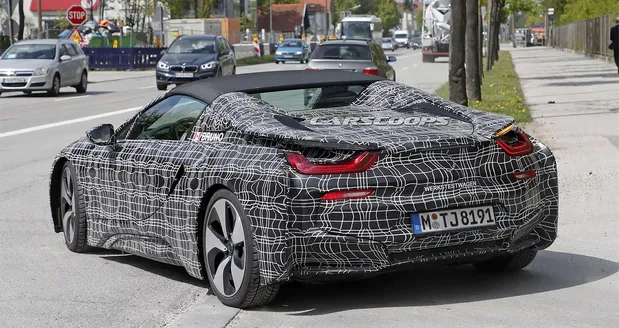 У баварцев появился еще один гибридный суперкар - i8 в кузове родстер. Он дебютировал одновременно с обновленным купе. От купе родстер отличается мягкой складной крышей, которая складывается за 16 секунд. В движение баварские новинки приводятся силовой установкой, в основе которой лежат 1,5-литровый трехцилиндровый бензиновый двигатель и электромотор. Суммарная отдача агрегатов - 375 лошадиных сил.