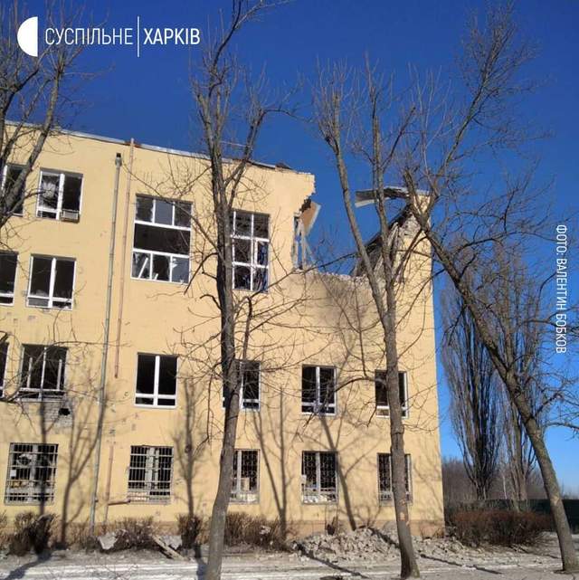 Последствия обстрела факультета университета Каразина в Пятихатках / Фото Валентина Бобкова