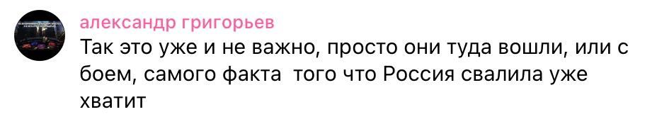 - "Неважно, зашли ли они (ВСУ – 24 канал) туда с боем, но того факта, что Россия свалила, уже достаточно";