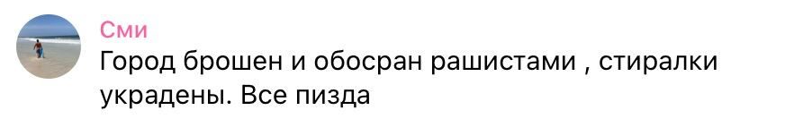 - "Город бросили. Все стиральные машинки украли. Все пи*да";
