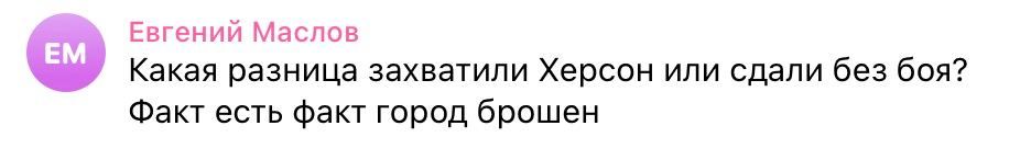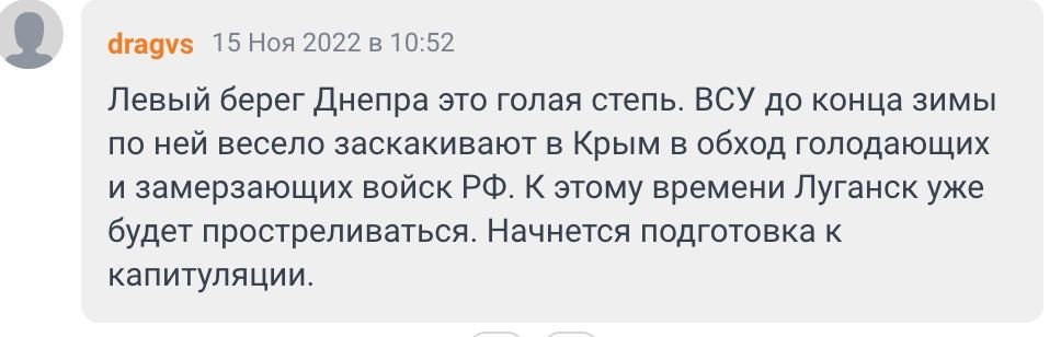 Больше всего комментариев во вражеских пабликах было о том, что оккупанты удрали с правого берега Херсонщины и поэтому пошатнулось "величие России". В частности, граждане государства-захватчика писали следующее: