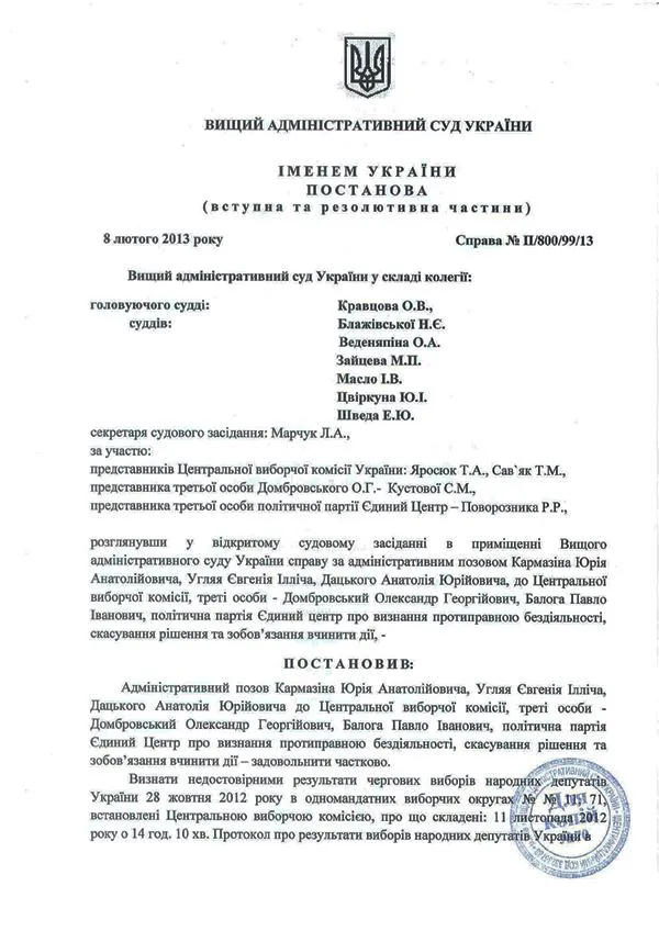 Своим вчерашним решением ВАСУ признал недостоверными результаты выборов народных депутатов в одномандатных округах брата Виктора Балоги Павла и Александра Домбровского. Суд отменил постановление ЦИК, касающиеся регистрации указанных нардепов и признал отсутствие у них статуса и полномочий народных депутатов Украины.