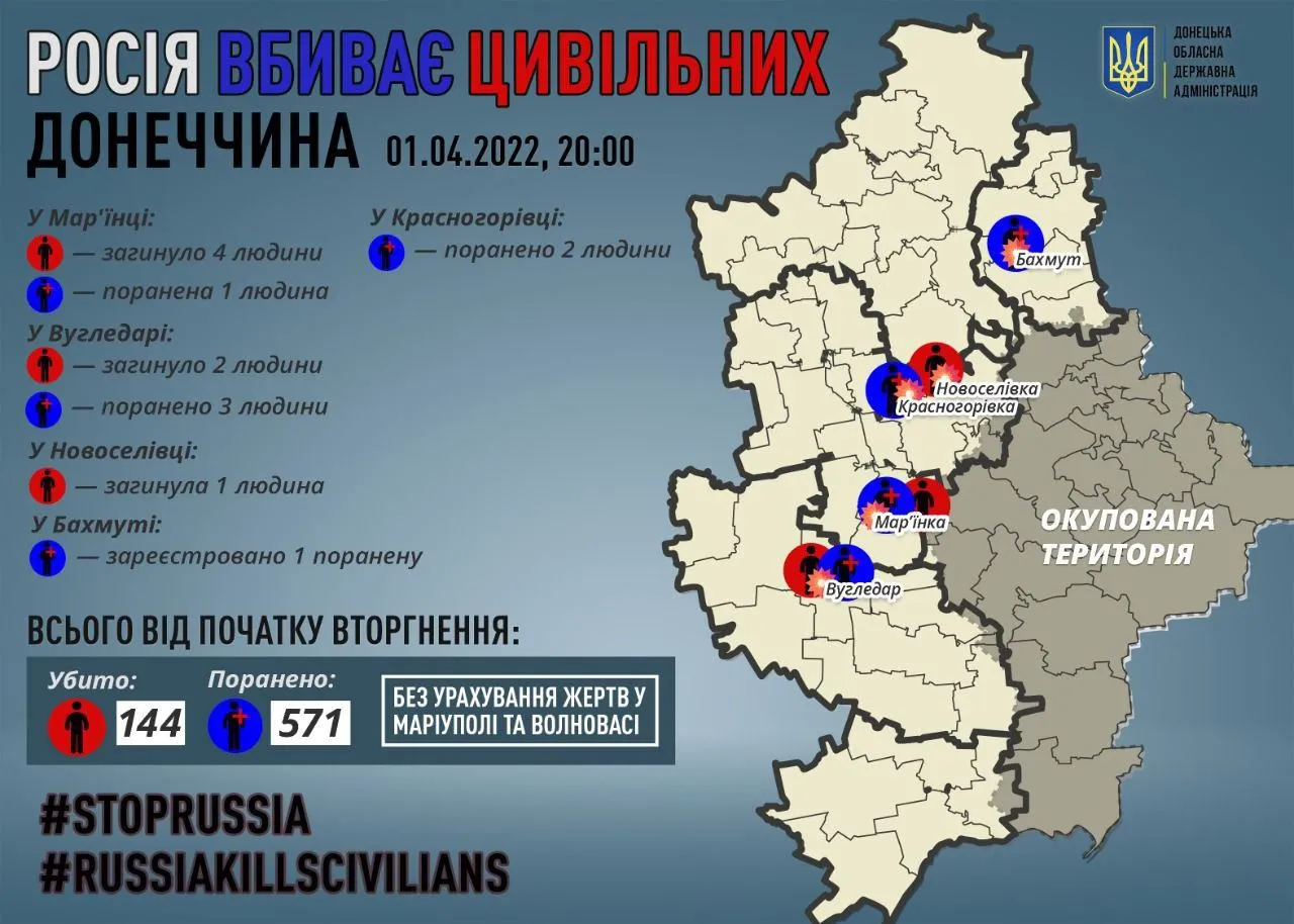 Потери в Донецкой области, по состоянию на 1 апреля, 20:00 / Инфографика телеграм-канал Павел Кириленко
