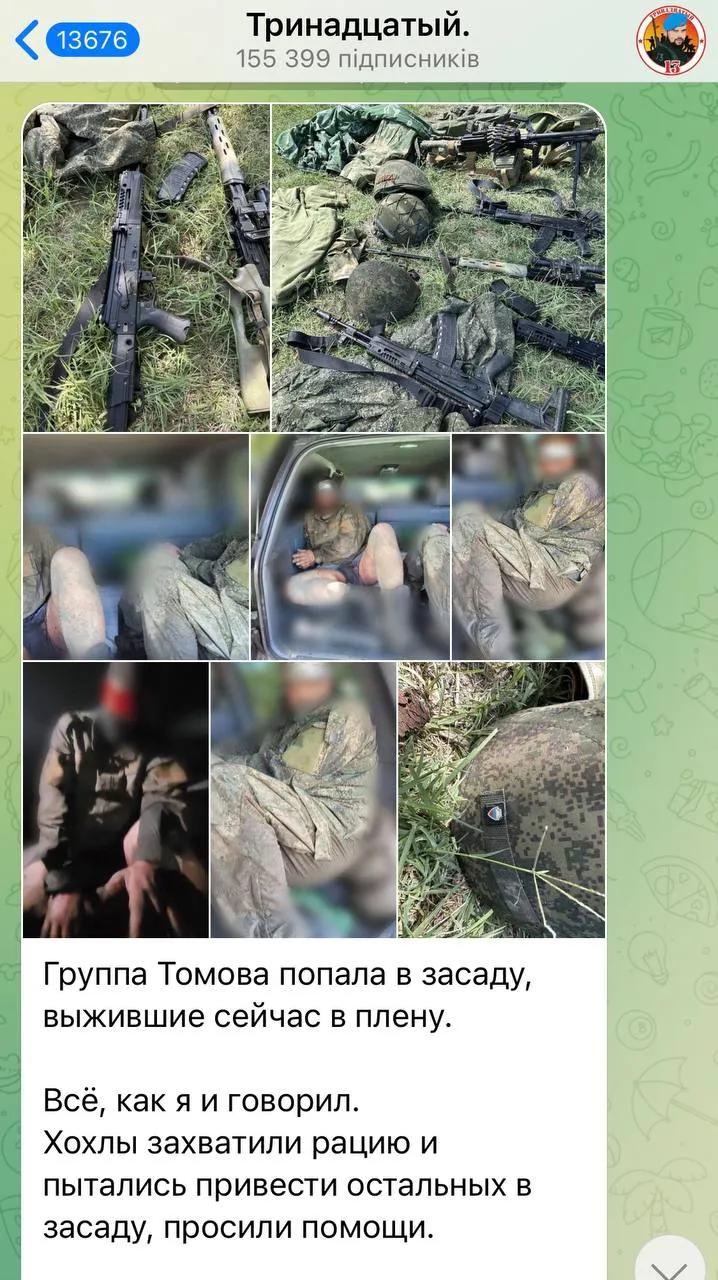 Результатом рейда диверсионной группы ВСУ на левый берег Днепра стало уничтожение и взятие в плен 25 российских оккупантов, пытавшихся отразить прорыв защитников Украины. Об этом сообщил "военкор" Егор Гузенко (Тринадцатый) у себя в телеграме. Украинский журналист Денис Казанский собрал нытье пропагандиста.