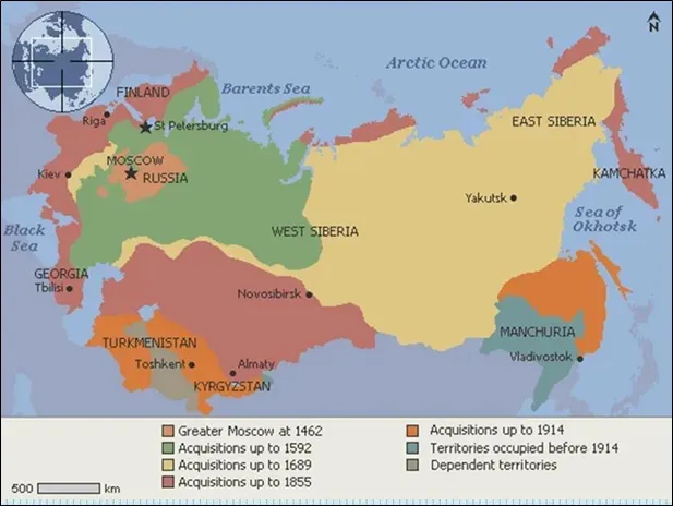 Первоначальное ядро Московии возникло из слабо организованной конфедерации соседних степных ханств и превратилось в монархически-советскую форму правления на манер европейских.