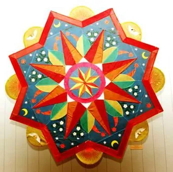 Каркас для великої звізди, яка буває на багато рогів складається з двох обручів, на ободі яких пропалюють отвори і закладають туди роги (кути). Всередині звізди є валок на який встановлюють свічку. Передня стінка звізди має чотири перехрестя, які утворюють вісім рівних частин, усі даталі скріплюють клеєм або тоненьким дротиком. До кінців рогів прив’язують нарізаний папір – кутаси. А потім все обклеюють папером, оздоблюють.