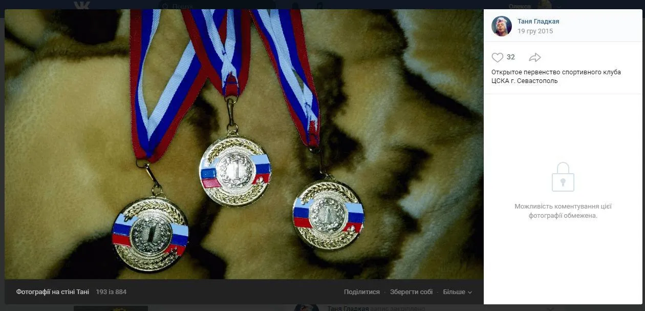 Дочь Гладкого в спортивных соревнованиях представляла Россию / Скриншот DeepState