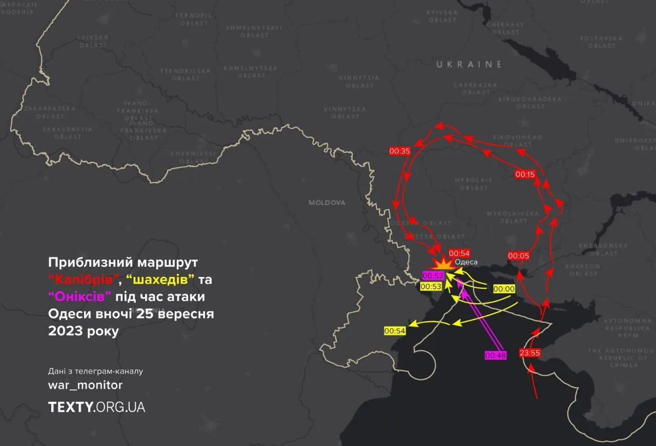 Как летели дроны и ракеты в Одессу в ночь на 25 сентября / Силы обороны Юга