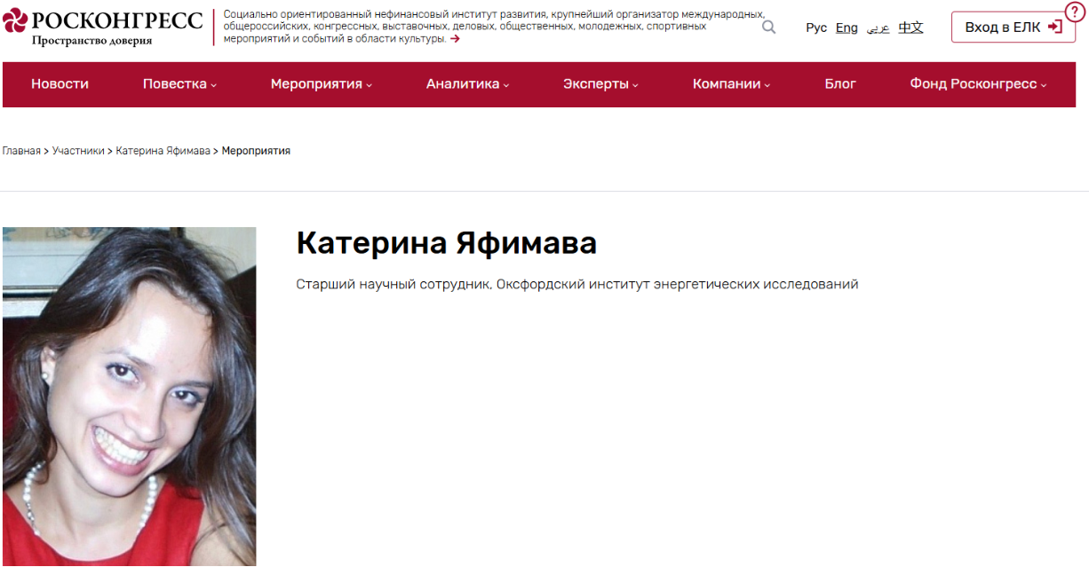 - Эксперт газовых рынков Катя Яфимава поддерживает позиции "Газпрома", совпадающие с интересами России, используя свою роль в аналитических институтах.