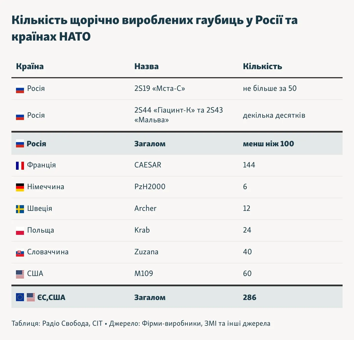 Производство гаубиц в России и НАТО / Инфографика "Радио Свобода"