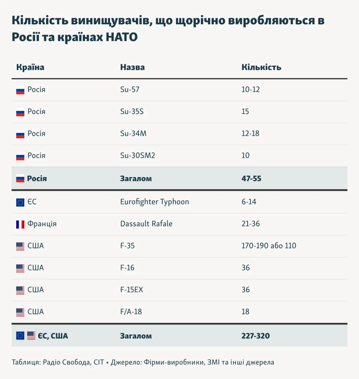 Сколько самолетов делают в России, а сколько – в НАТО / Инфографика "Радио Свобода"