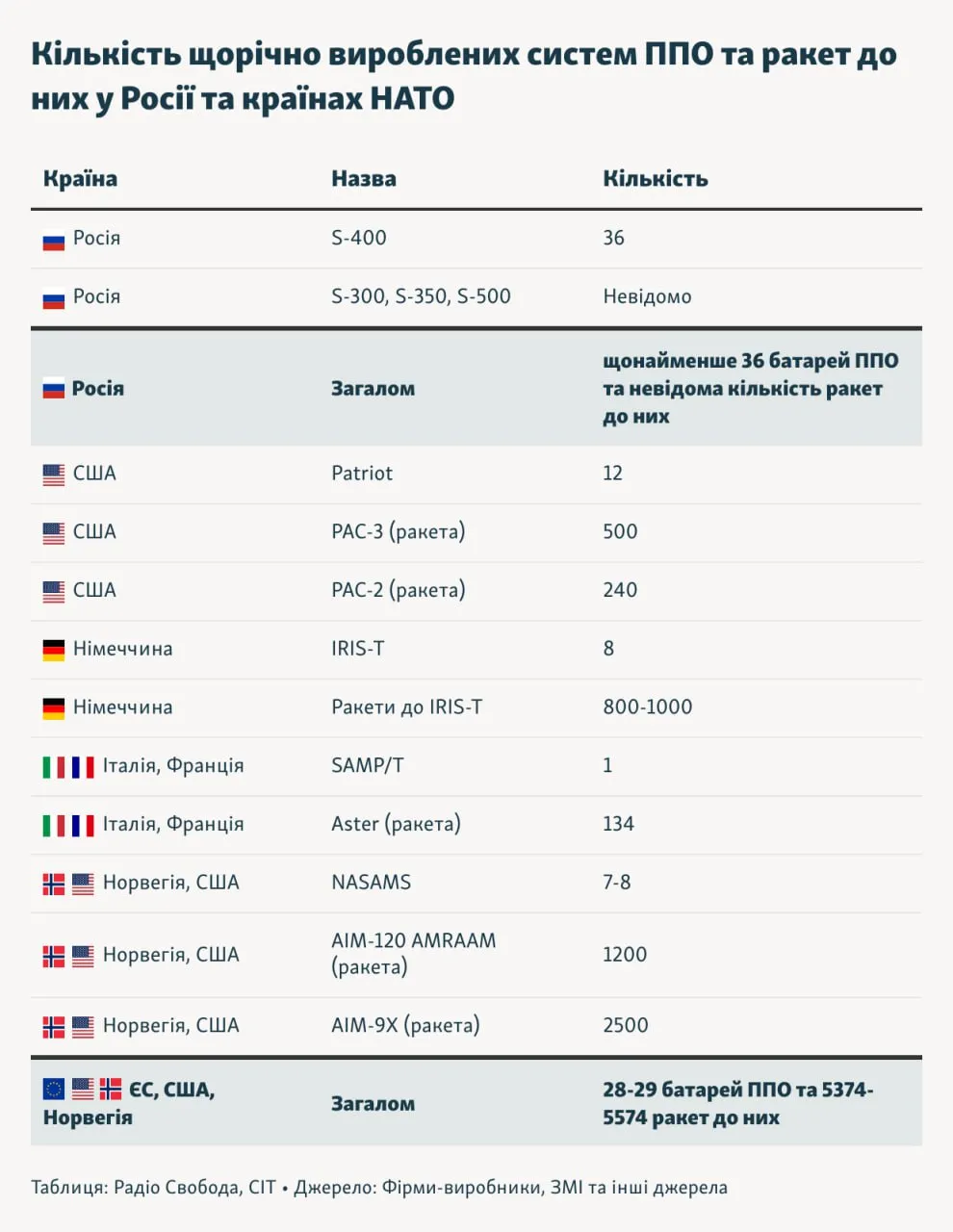 "Из-за недостатка информации определить, кто ежегодно производит больше систем ПВО, не представляется возможным. Однако, вероятно, производство средств ПВО и боеприпасов к ним – сфера, где ни одна из сторон не чувствует себя достаточно защищенной", – пишут аналитики "Радио Свобода".