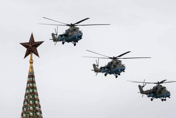 Замыкал колонну вертолетов квинтет Ми-28Н, известных также под именем "Ночные охотники". За их штурвалами находились летчики единственной в России пилотажной группы "Беркуты". Заметим, что Ми-28Н с 2016 года Россия использует в войне в Сирии.