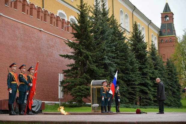 Президент России Владимир Путин, со своей стороны, на Соборной площади Кремля провел смотр Президентского полка. Происходило это под марши, которые исполнил военный оркестр. Также он возложил цветы к Вечному огню в Александровском саду.