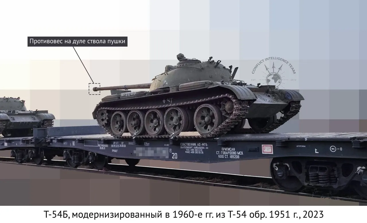 Журналист и блогер Денис Казанский рассказал, что в России впервые замечены эшелоны с танками Т-54, которые, очевидно, снимают с консервации для перекидывания в Украину. По его словам, это танки производства конца 1940-х и начала 1950-х годов.