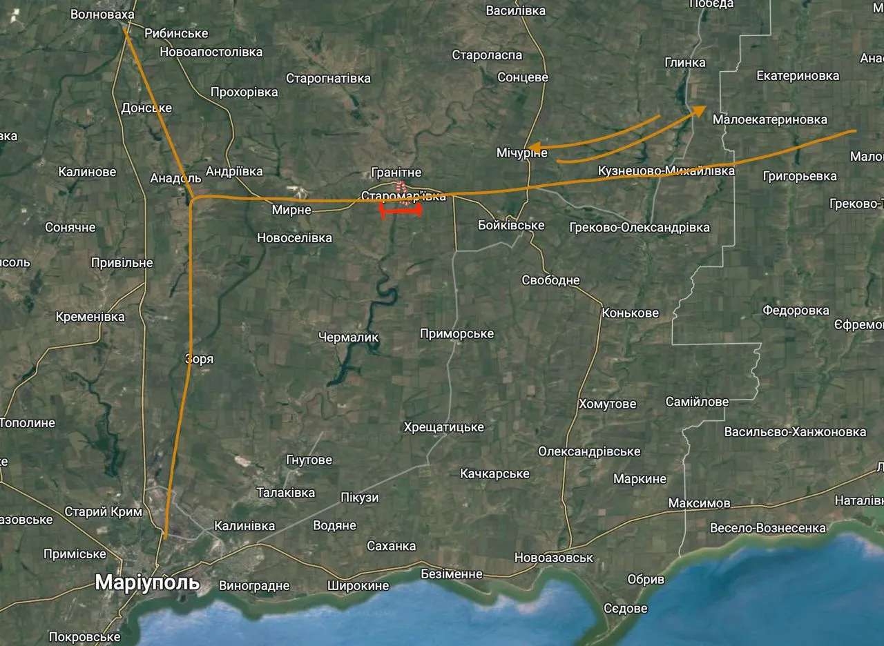 Россияне начали работу над тем, чтобы создать прямое железнодорожное сообщение с Мариуполем, Волновахой и Донецком. Они уже строят железнодорожный мост у села Гранитное через реку Кальмиус. Это позволит россиянам включить Таганрог и Ростов-на-Дону в уже существующую железнодорожную ветку Мариуполь-Асланово-Кальчик-Волноваха.