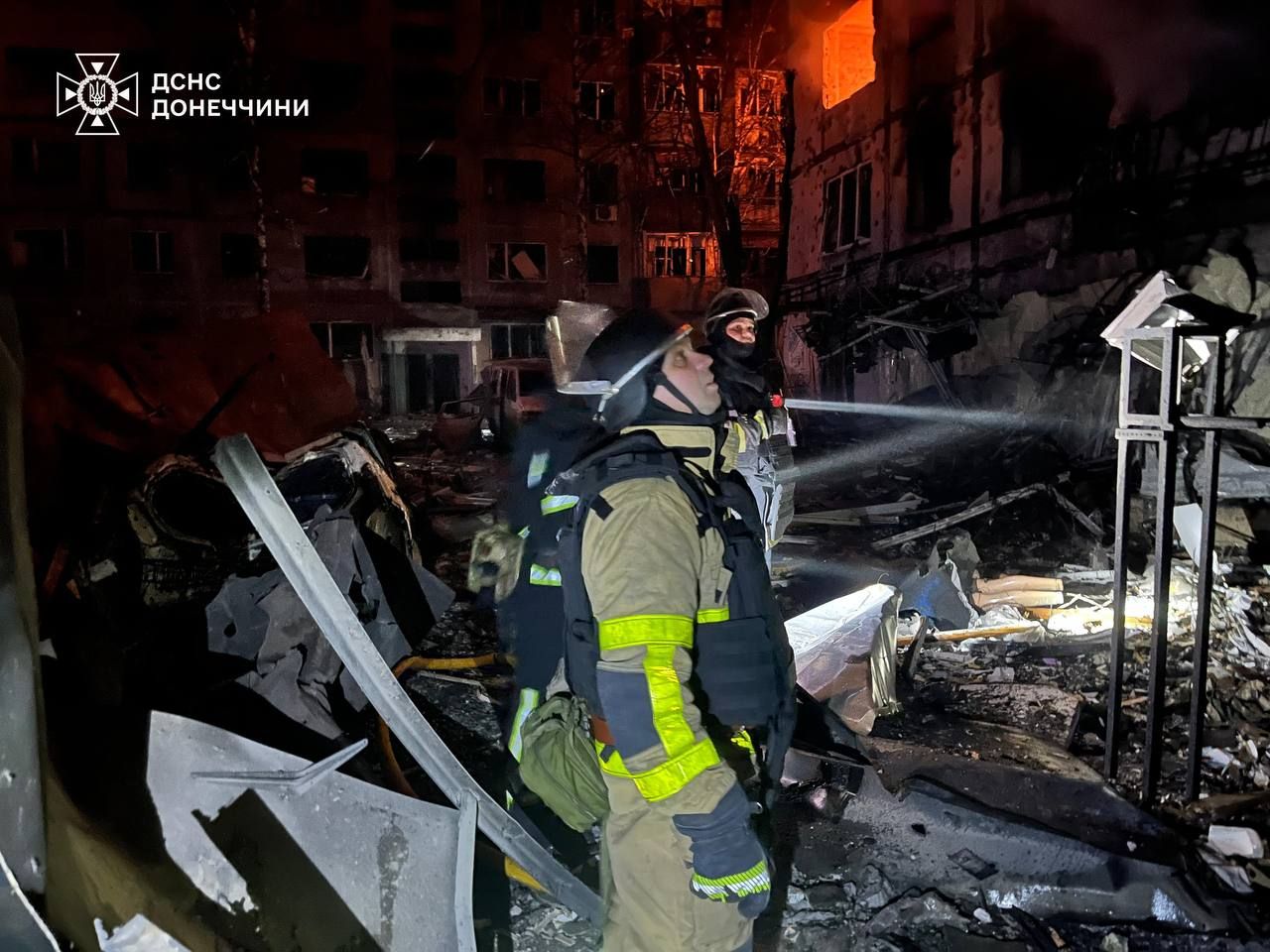 Во время тушения возгорания россияне нанесли повторный удар и повредили пожарную машину. Несмотря на это, спасатели продолжают работать. Удалось ликвидировать пожар в 20 квартирах, ликвидировано 3 возгорания общей площадью 190 квадратных метров.