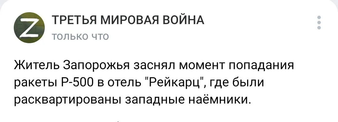 В значительной части российских сообщений об ударе по гостинице в Запорожье говорится, что там дислоцировались наемники. Правда, россияне так и не определили, будь то украинские или иностранные солдаты.