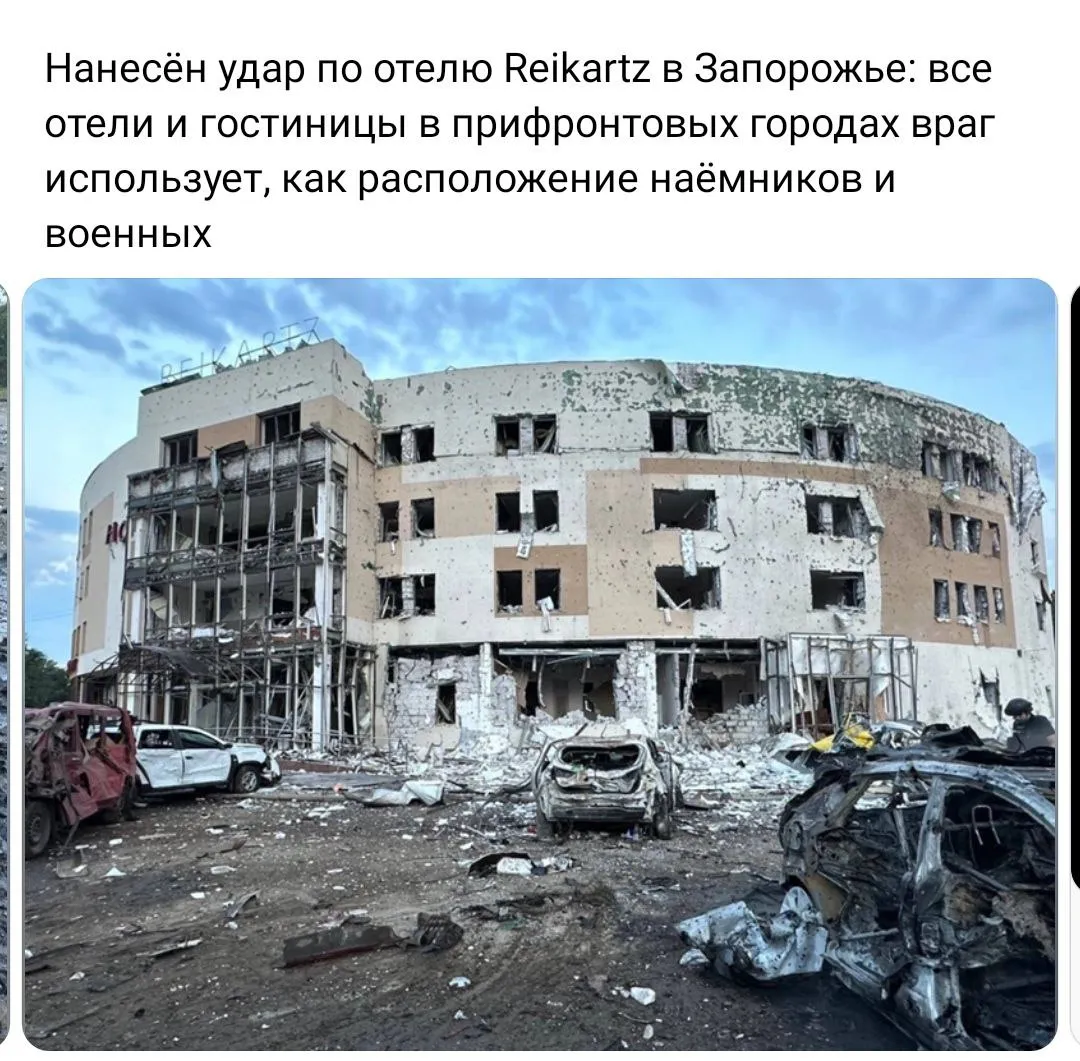 - Выяснилось, что именно этой гостиницей часто пользовались представители ООН. Они и отреагировали на ракетный террор, которую осуществила Россия. В заявлении говорится, что гостиницу Reikartz использовали сотрудники ООН и другие гуманитарные организации, чтобы помогать жителям Запорожья. Кроме этого, там также останавливался глава МАГАТЭ Рафаэль Гросси, когда приезжал в Запорожье.