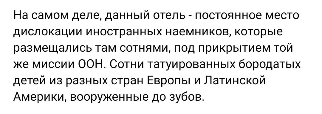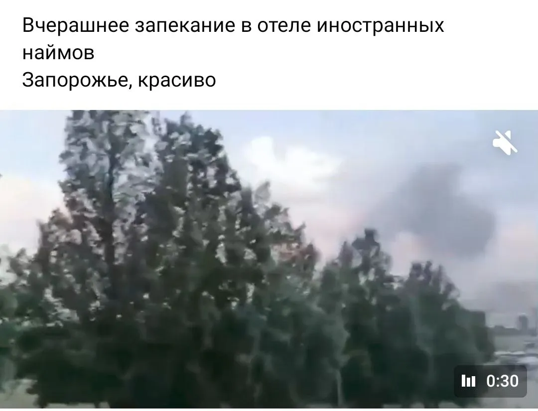 Здесь речь идет об иностранных наемниках, которые, по информации российской пропаганды, дислоцировались в гостинице Запорожья, однако есть и сообщения о том, что там находились "украинские бандформирования".