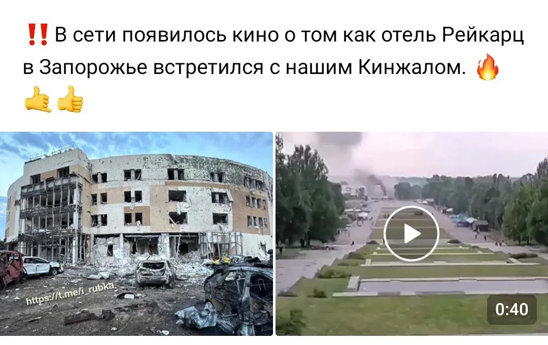 Кроме этого, они так радуются возможности уничтожать мирный прифронтовый город, что не могут прийти к согласию о том, какой ракетой ударили по гостинице. В сообщениях выше говорилось об "Искандере", но некоторые сообщали и о "Кинжалах".