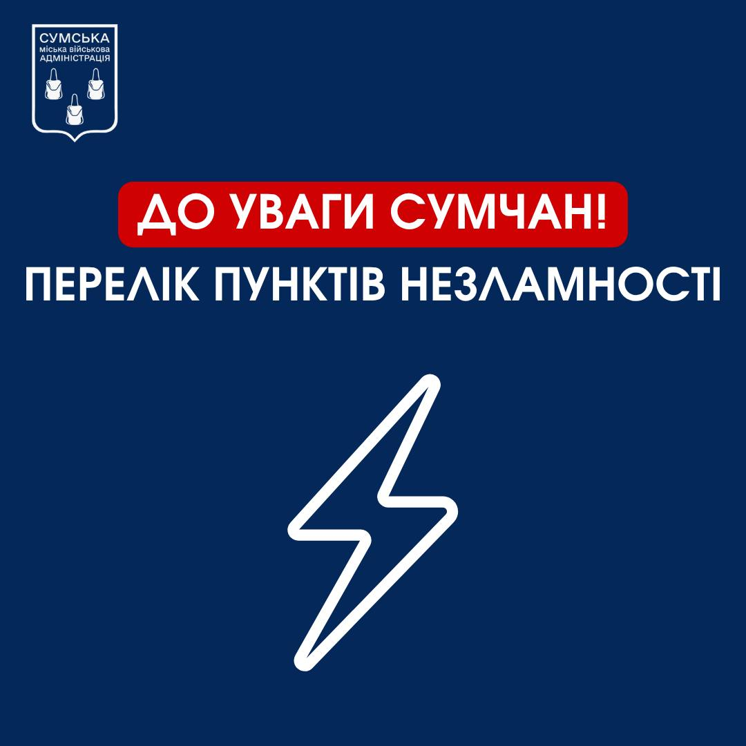 Временно исчезло электроснабжение в части Сумского района. Там, где его нет, разворачивают пункты несокрушимости.