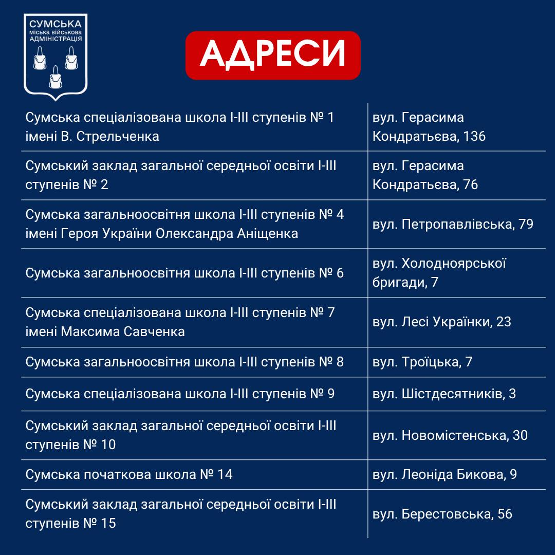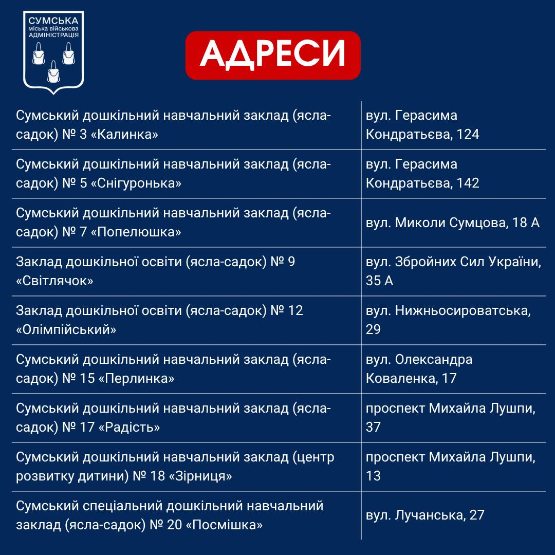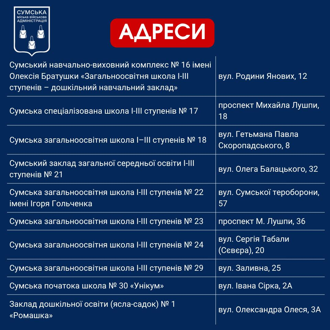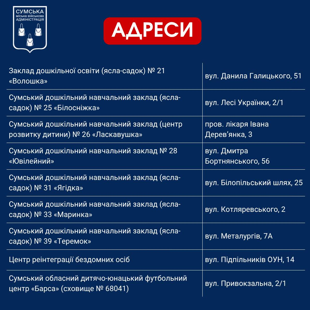 Перечень Пунктов несокрушимости в Сумах