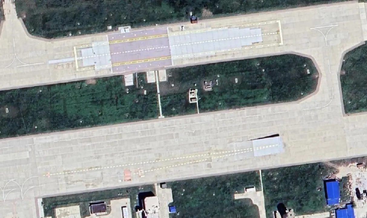 Имитация тормозной полосы авианосца комплекса НИТКА на авиабазе "Саки" / Maxar