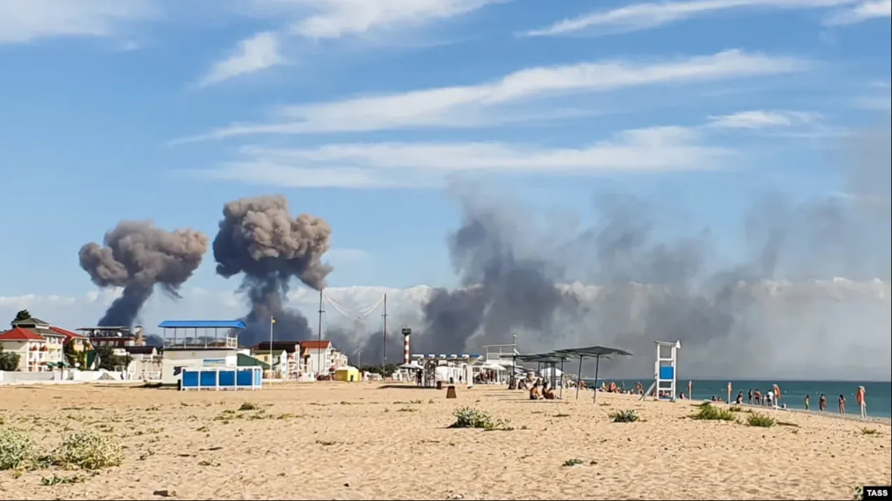 Фото столбов дыма после поражения аэродрома "Саки" 9 августа 2022 года / ТАСС