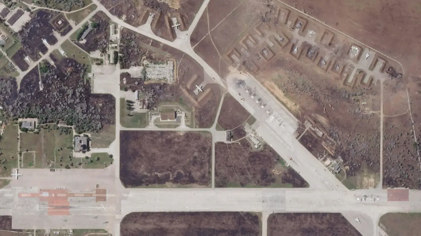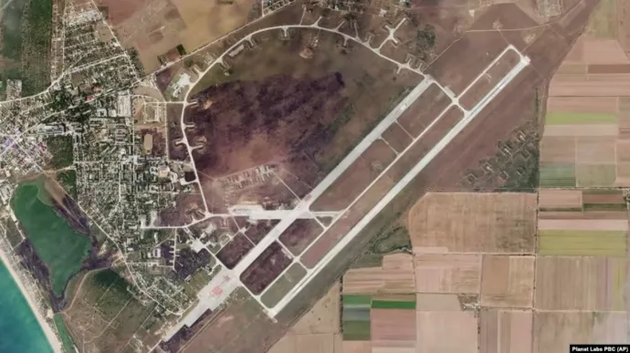 Спутниковый снимок аэродрома "Саки" после поражения 26 июля 2024 года / AP News