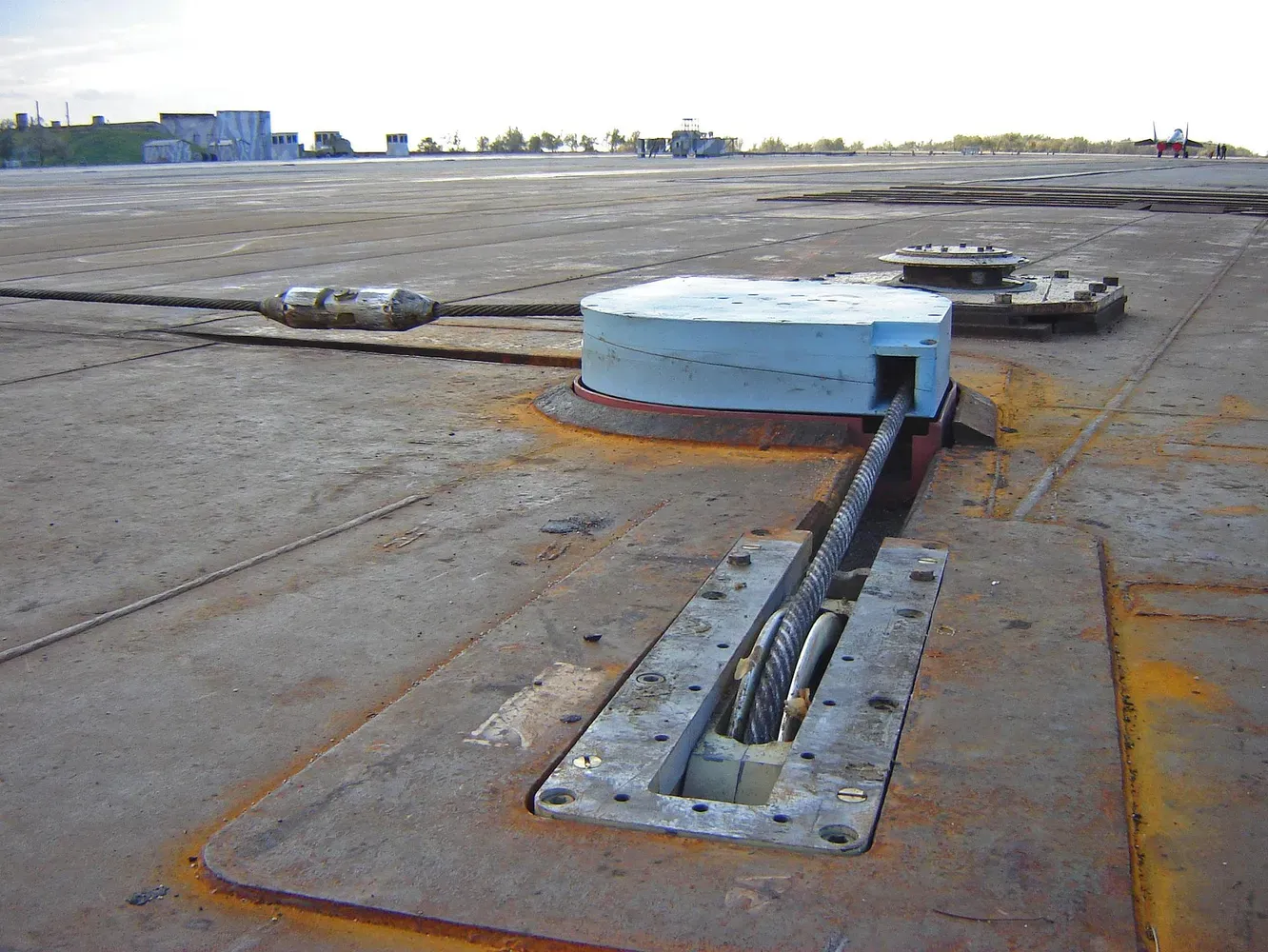 Аэрофинишер – это механизм, который помогает быстро остановить самолет во время посадки на авианосец с помощью тросовой системы, зацепляющей тормозной крюк самолета.Аэрофинишер комплекса на аэродроме "Саки" / Первый Севастопольский