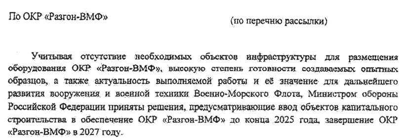 - В период с апреля по июнь в ВМФ проводили совещания относительно вида, стоимости, этапов и сроков создания комплекса. В июле подготовили проект предложений по реализации замысла в рамках государственной программы. Главнокомандующий ВМФ подписал его и направил на согласование в Росатом, Ростех, Объединенную авиастроительную корпорацию, министерство финансов, министерство промышленности и торговли, а также министерство экономики. После согласования документ передали на рассмотрение коллегии ВПК РФ для дальнейшего утверждения Путиным.
