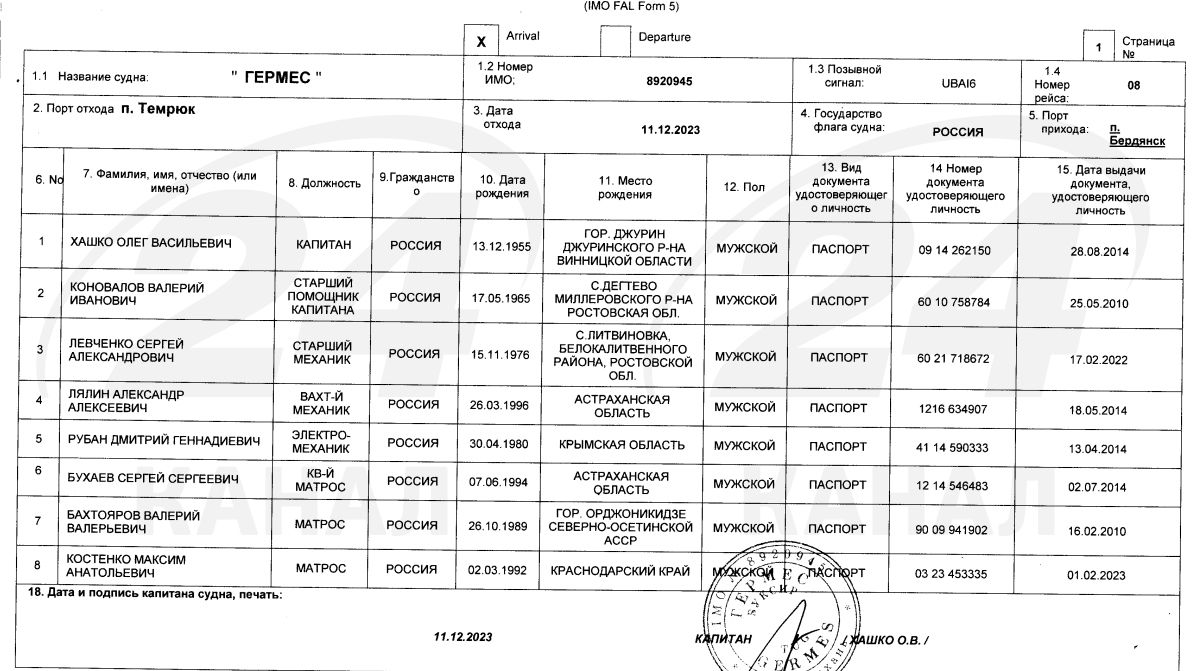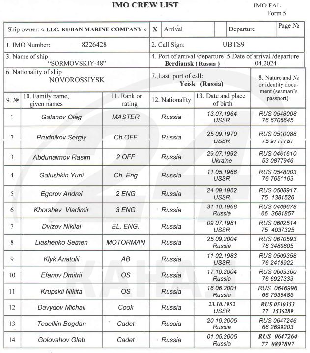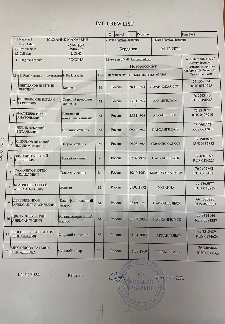 Наша редакция смогла установить корабли, которые заходили в порт во временно оккупированном Бердянске и вывозили украинский урожай, а также часть их экипажа.