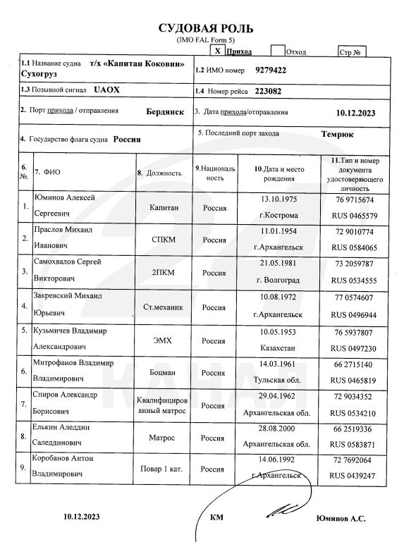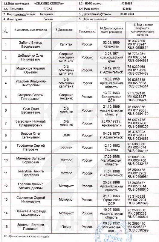 Согласно материалам так называемого уголовного производства, в 2023 – 2024 годах "Государственное Унитарное предприятие Запорожской области "Бердянский морской торговый порт"" активно занималось перевалкой зерновых и масличных культур, которые в дальнейшем транспортировались в порты Кавказ, Темрюк и Керчь. Совокупная прибыль предприятия от этой деятельности составила более 168 миллионов рублей. Среди основных грузоотправителей – так называемый "Государственный зерновой оператор" и сомнительная структура под названием "ООО "Кристалл-2019"", которая до 2023 года фактически не вела никакой хозяйственной деятельности.