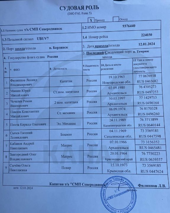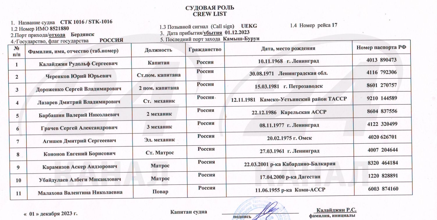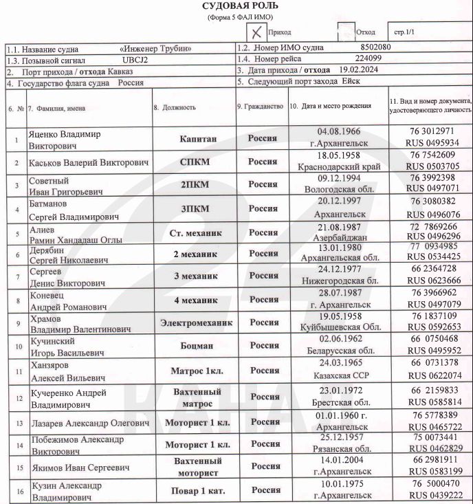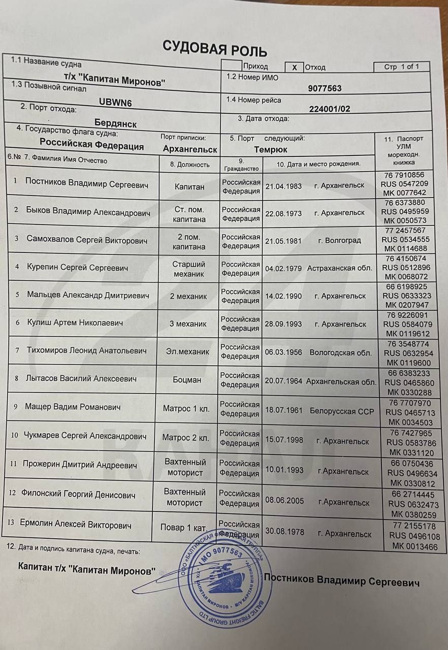 Ниже Вы можете увидеть соответствующие документы и список кораблей с членами их команд: