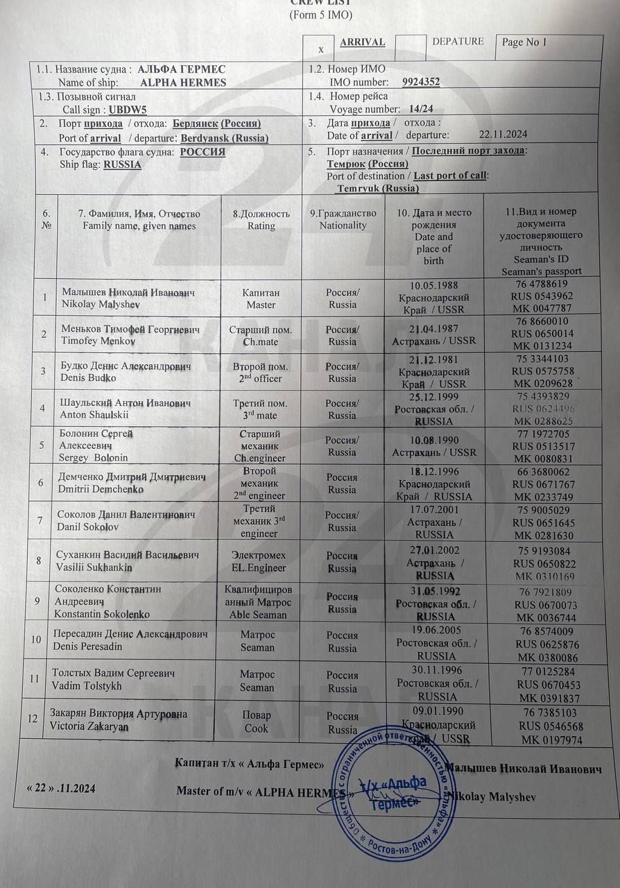 Судно FEDOR из этого списка, как раз специализируется на похищении украинского зерна. ОNIX и LAZURITE также уже неоднократно были замечены в этом преступлении. POLA HARITA и POLA VARVARA как указано на портале War & Sanctions от ГУР МО находится под санкциями в результате участия в "энергетических проектах". По факту это из-за принадлежности судна к подсанкционной компании ООО "Пола Райз", что не исключает того факта, что они привлечены к похищению нашего урожая с ВОТ. Все остальные суда ранее не фигурировали в расследованиях или санкционных списках.