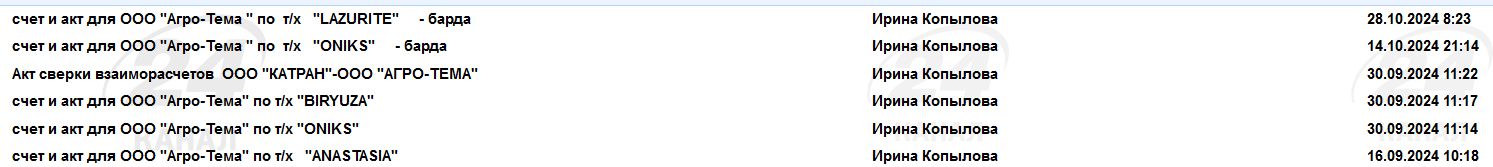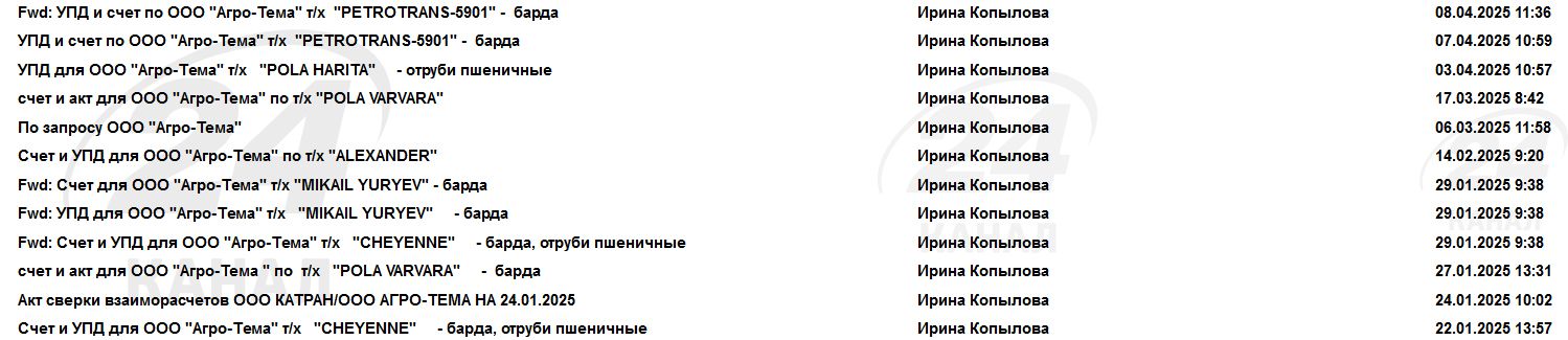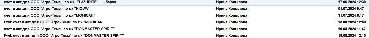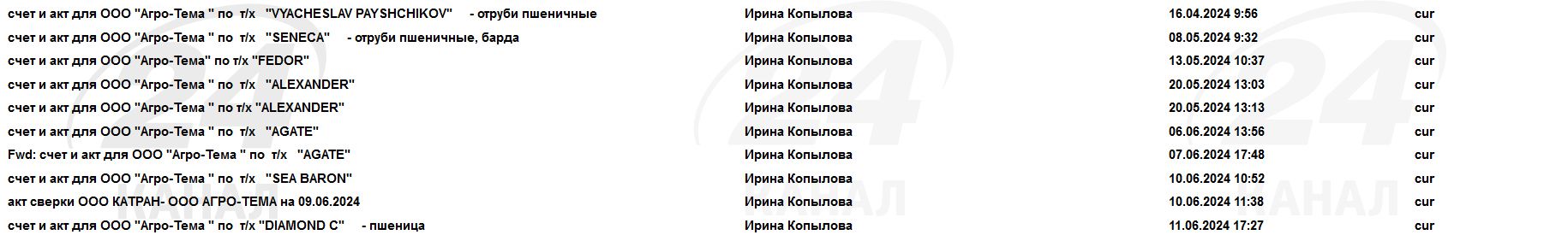 Благодаря данным со взломанной почты одной из компаний, мы можем идентифицировать судна, которые использовались, в частности, для перевозки зерна компании Агро-Тема, а значит украинского зерна.