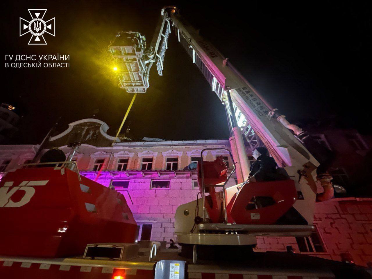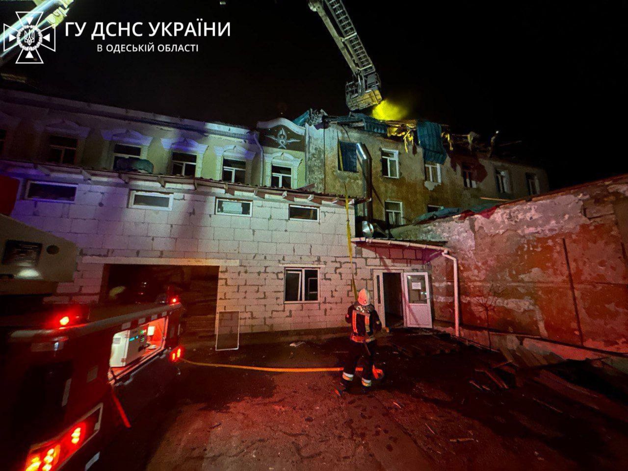 Наталья Гуменюк уточнила, что в здании значительные повреждения, в том числе разрушены около 200 квадратных метров кровли. Также было две ячейки возгорания на площади около 40 квадратных метров – пожар быстро был ликвидирован.