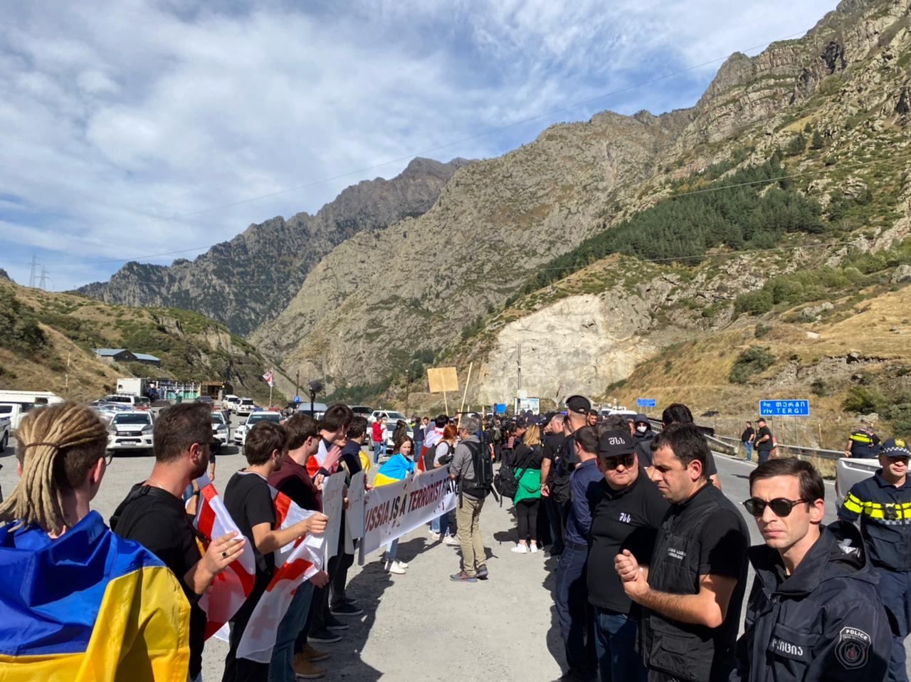 На границе их ждали грузины. Очевидно, они не очень рады "z-патриотам" в своей стране.