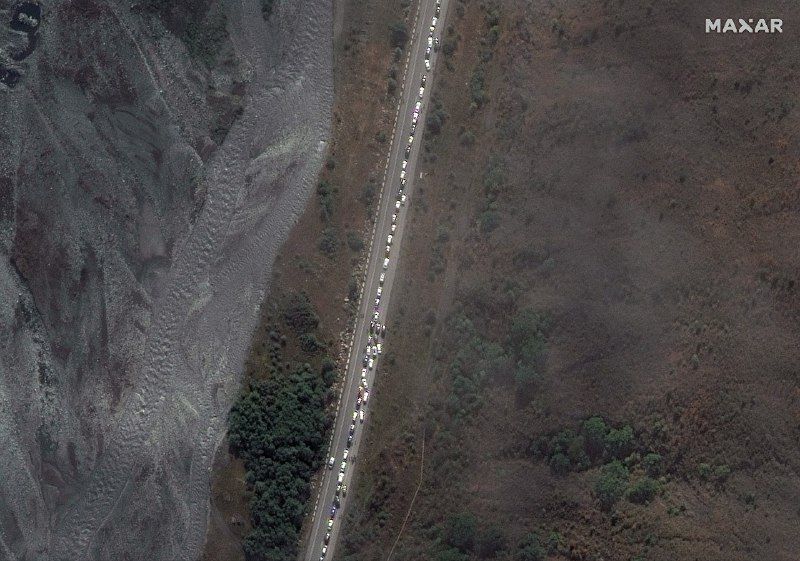 Более того, этот огромный поток автомобилей виден даже из космоса. Это показала компания Maxar Technologies на своих фото.