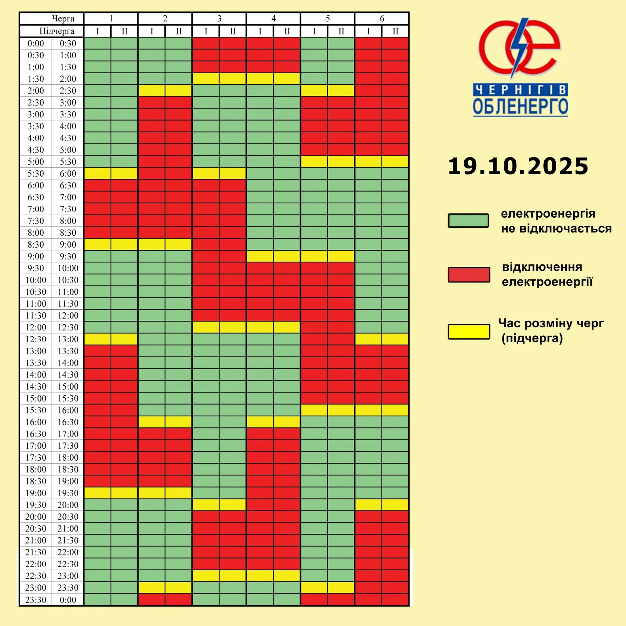 Известен ли график отключений света на Черниговщине на 20 октября 2025 года?
