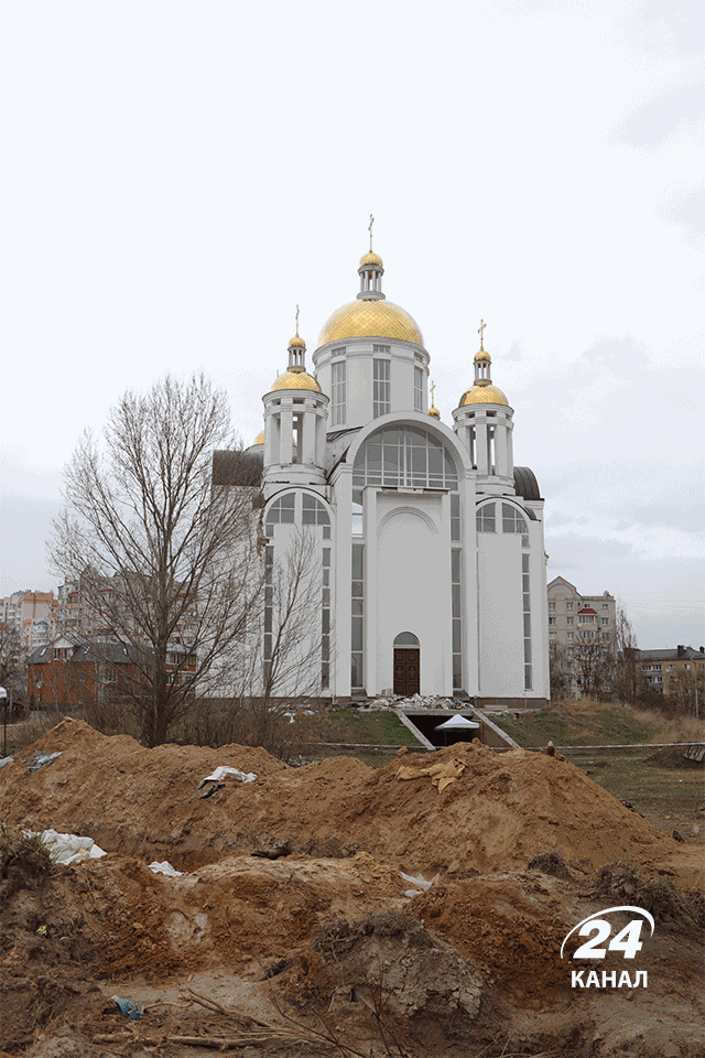 Возле церкви Андрея Первозванного, где было расположено одно из массовых захоронений местных, глава Бучи рассказал нам о "сюрпризах" от оккупантов, военных преступлениях военных путинского режима, эвакуации, реабилитации пострадавших, шовинизме россиян и возможном создании украинской версии "Моссада".