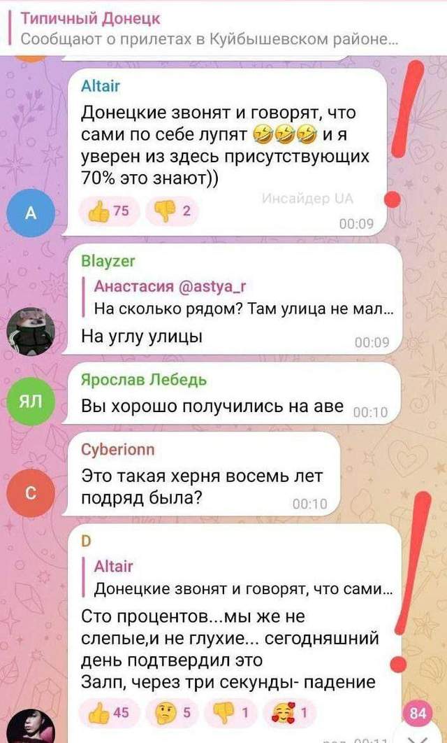 Скриншоты комментариев дончан об обстрелах, которые произвели россияне: