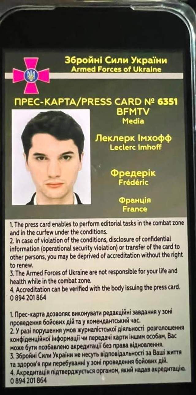 Впоследствии Сергей Гайдай уточнил, что погиб Фредерик Леклерк Имхофф – французский журналист, оператор и фотограф. Работал на телеканале BFMTV.