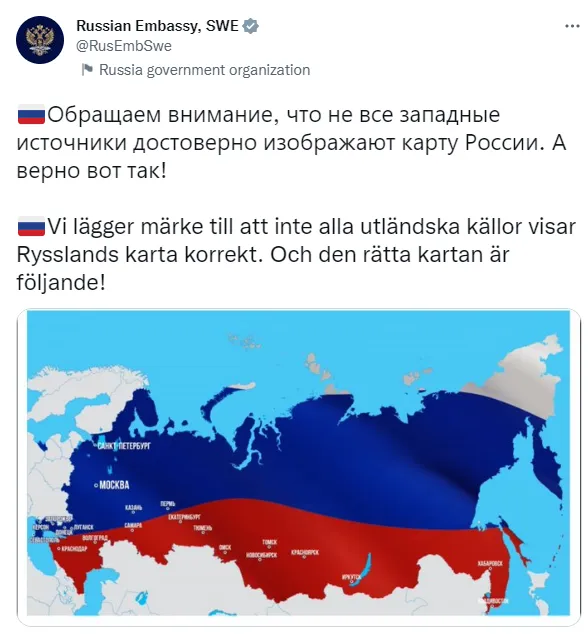 Сообщение посольство России в Швеции в твиттере опубликовало 17 января в 18:53. По состоянию на 23:40 сообщение еще не удалили.