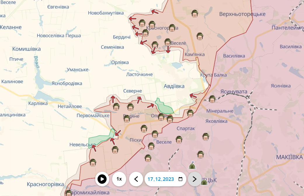 Однако уже третий месяц подряд продолжаются непрерывные попытки россиян захватить Авдеевку. Россияне продолжают давить на южном и северном фасах города, а также продолжаются и лобовые атаки со стороны Макеевки.